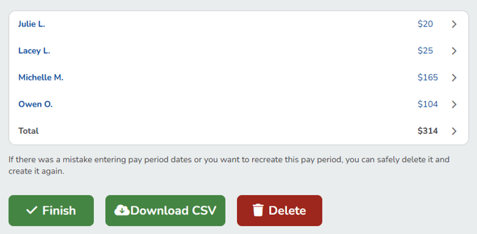 Pike13 calculates the data (hours worked, money earned), but it does not process the actual funds. You will use the final report generated here to compensate your staff outside of Pike13 according to your preferred third-party payroll provider.