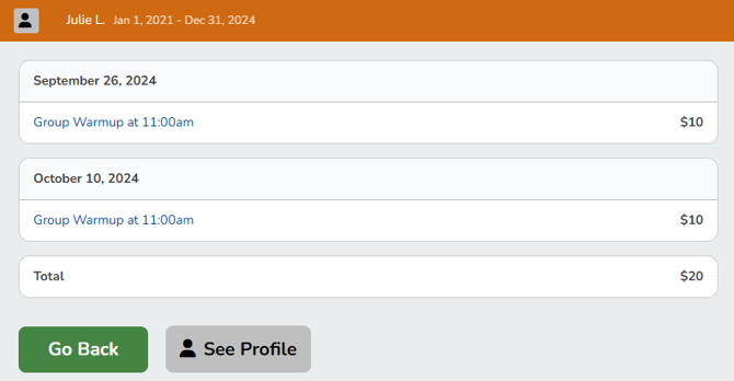 You can run detailed payroll reports directly with Pike13's built-in tools. This tool calculates the total amount owed to your staff based on their assigned pay rates and confirmed attendance.