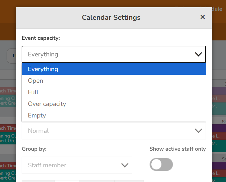 Now you can filter your schedule by event capacity to quickly find classes with open spots, manage your over-bookings and cancel empty sessions. Tap the gear icon on the schedule to set the filter.