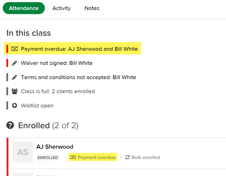We are happy to announce that past due invoices for children/dependents now appear directly on their dashboard and in the rosters! This enhancement will allow staff members to easily see if a dependent's invoice has not been paid by the account manager. Previously we only showed this on the payer's account.