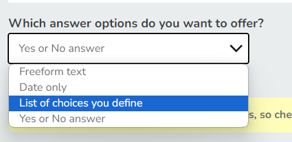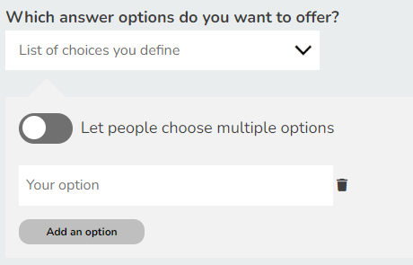 • A list of choices that you define which also allows you to Let people choose multiple options.