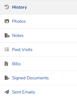Client Dashboard Side Menu: History