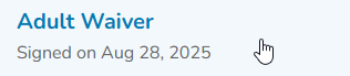 - Signed Documents will allow you to view signed waivers and miscellaneous documents. From here, you can click on the PDF to download the document.