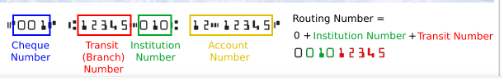 0+Institution Number (3 digits)+Branch Number (5 digits)Note: These fields appear in reverse order on physical Canadian checks. You may need to add a leading zero to reach the required 9 digits.