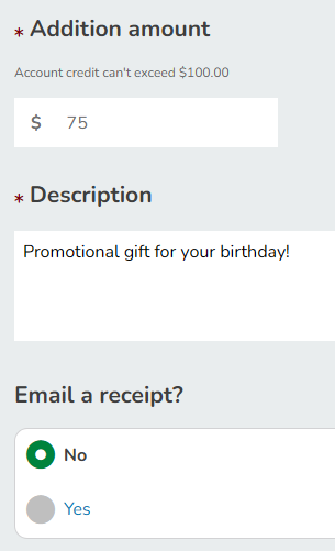 Account credit is a non-monetary balance applied to a client’s profile for future purchases. It benefits both parties by keeping revenue within your business and avoiding additional merchant processing fees that occur with traditional credit card refunds.
