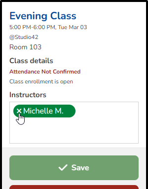 - Under Instructors, click the X next to the current instructor's name to remove them.