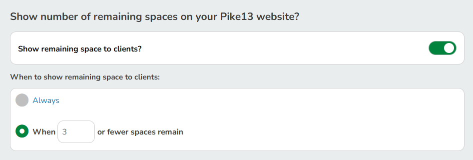 - Option to show remaining spaces when a certain number of spaces remain in a course