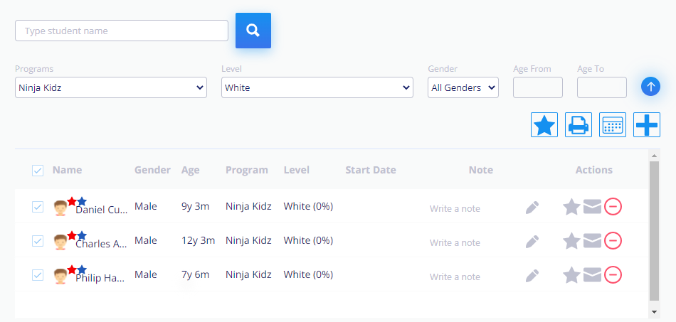 Once one or many students have completed the necessary skills for one level, staff and admins can move them to the next level in bulk or one at a time.