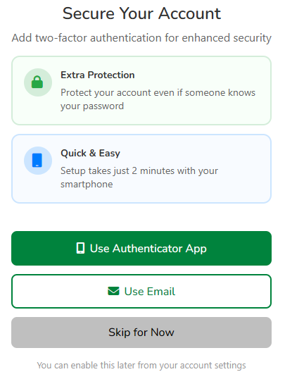 After clicking Use Authenticator App, you will see a QR code that can be scanned with apps like: