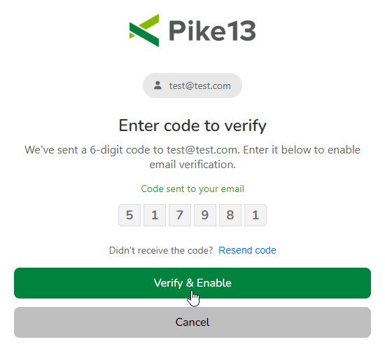 The next time you sign in to Pike13, you will need to enter a 6 digit code once your username and password have been successfully submitted.